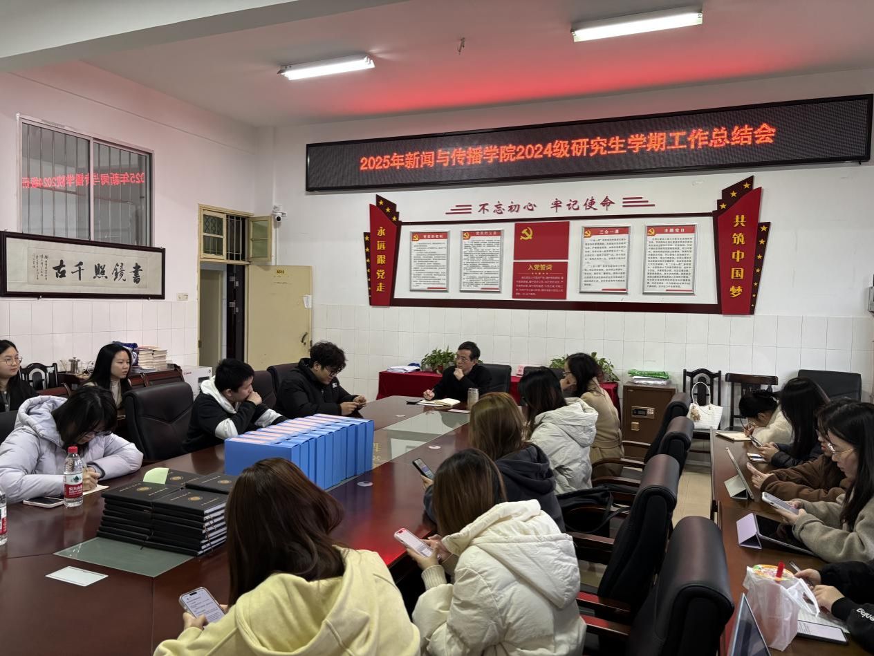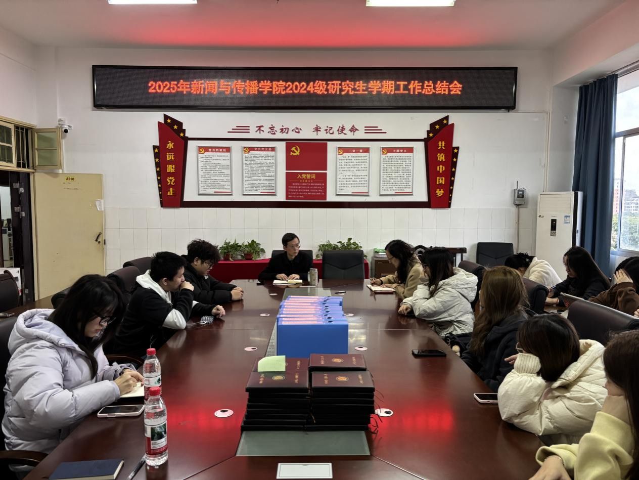 2025 年 12 月 16 日下午 5 时,菠菜担保网 2024 级研究生学期工作总结会在文科楼 A510 会议室召开。副院长邓庄、熊雅静老师及 2024 级全体研究生参会。